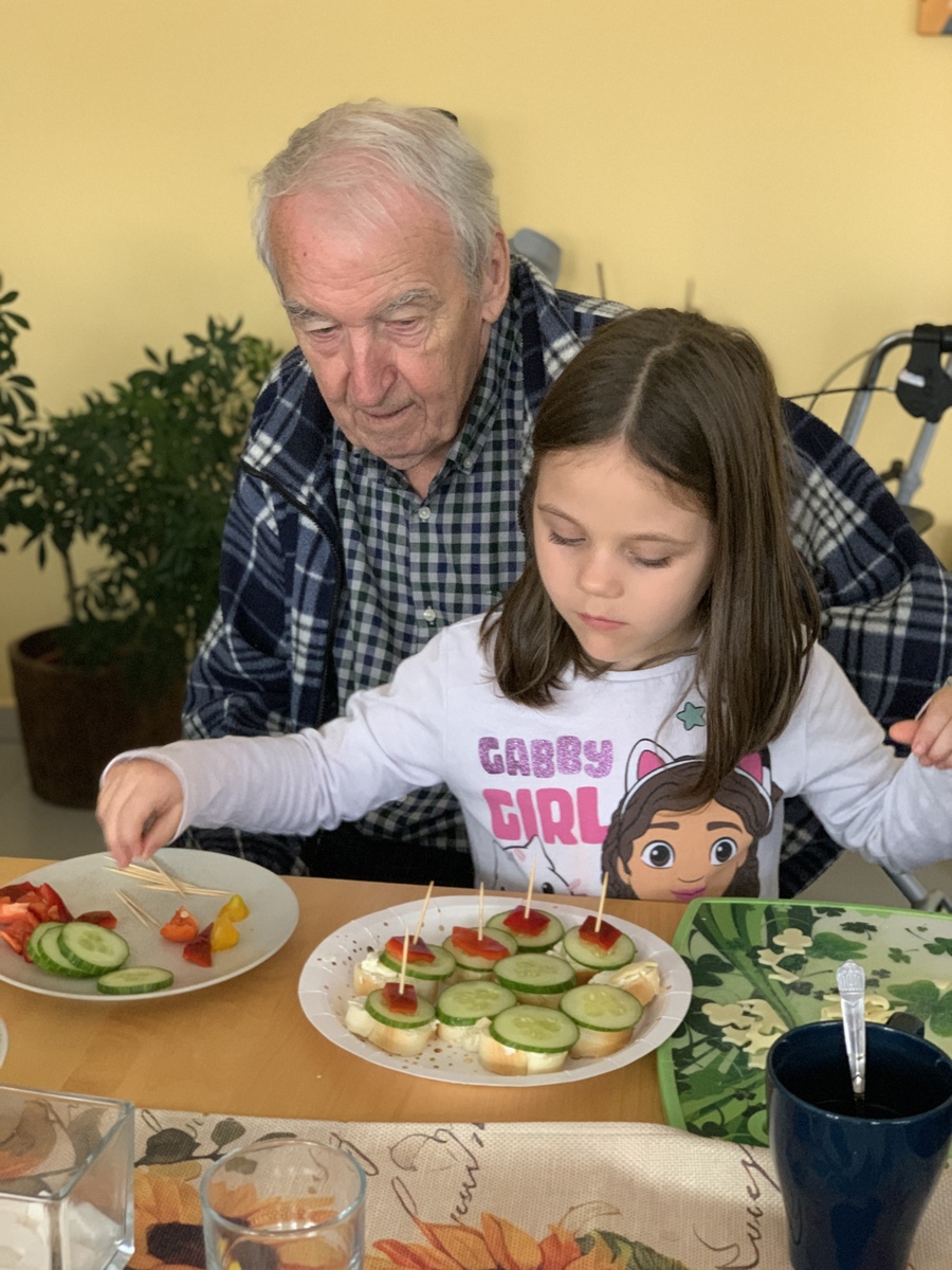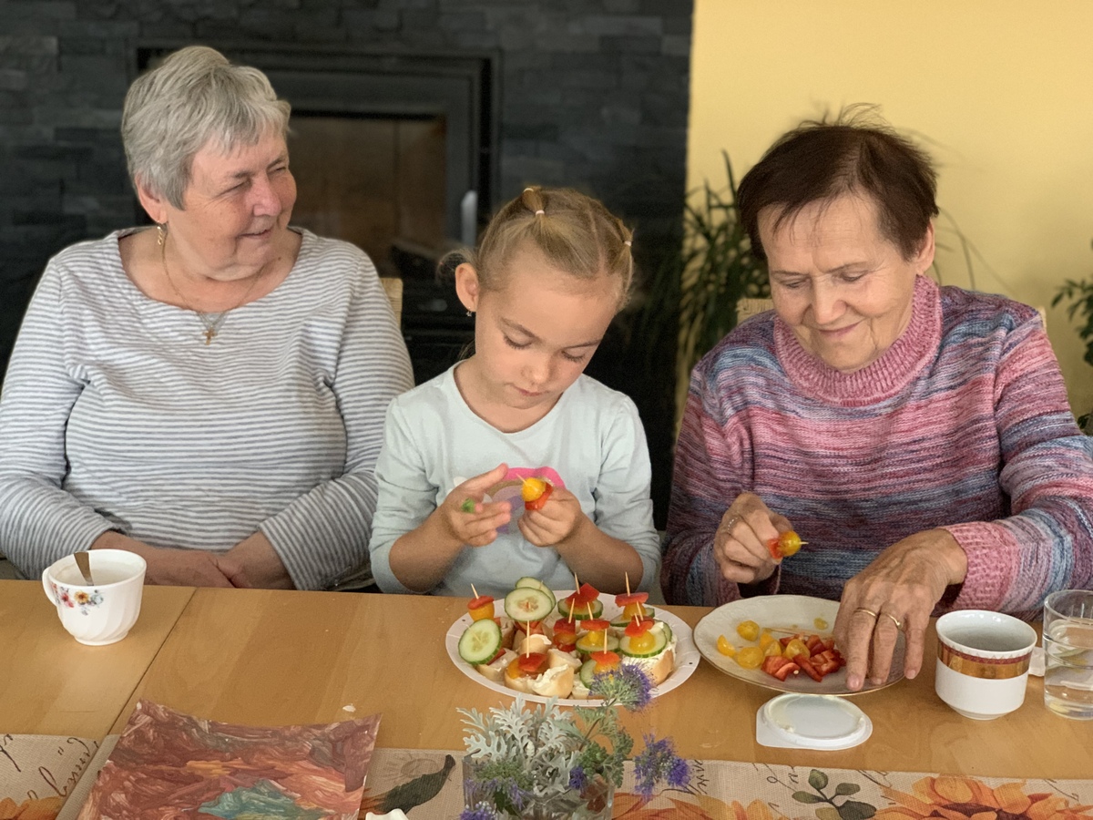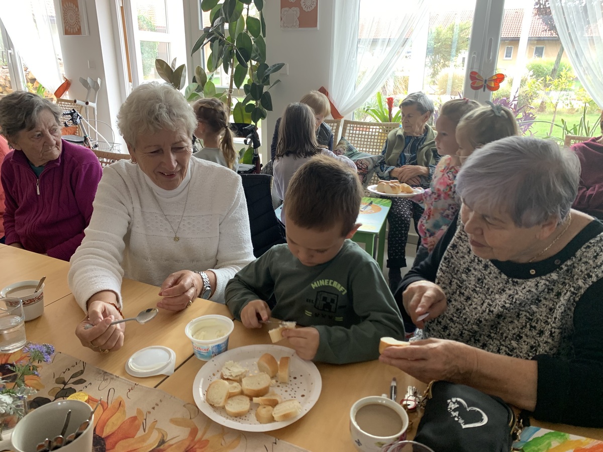 Děti navštívily domov seniorů a společně si připravily chutnou svačinku, děti byly svědky toho jaký je život starších babiček a dědečků, a senioři byli potěšeni návštěvou mládí, na které mohli zavzpomínat.