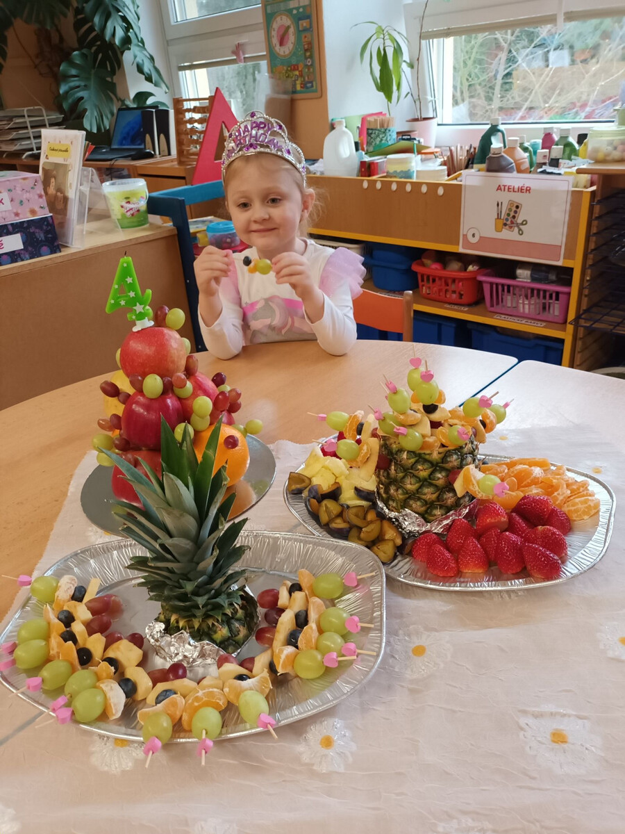 V rámci podpory zdravého životního stylu v naší mateřské škole, nás mile překvapila Beátka, která ke svým čtyřletým narozeninám pro děti ze své třídy Krteček, připravila společně s maminkou občerstvení plné vitamínů. Vše bylo vyrobeno z čerstvého ovoce a s důrazem na pestrost, barvy a chuť.