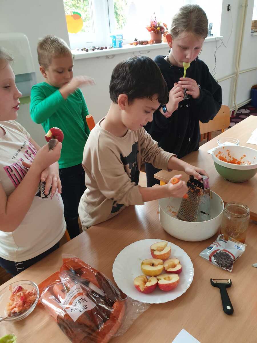 důležitá zdravá strava a čím se dají nahradit bonbony a čokoláda. Největším překvapením bylo zjištění kolik cukru obsahují slazené limonády a džusy. Dětem nejvíc chutnaly vlastnoručně vyrobené nápoje z čerstvého ovoce a zeleniny. Celý program se nám velmi líbil a jistě se ještě k některým receptům rádi vrátíme, ať už v rámci vánočního posezení v družině, nebo při různých dalších příležitostech.