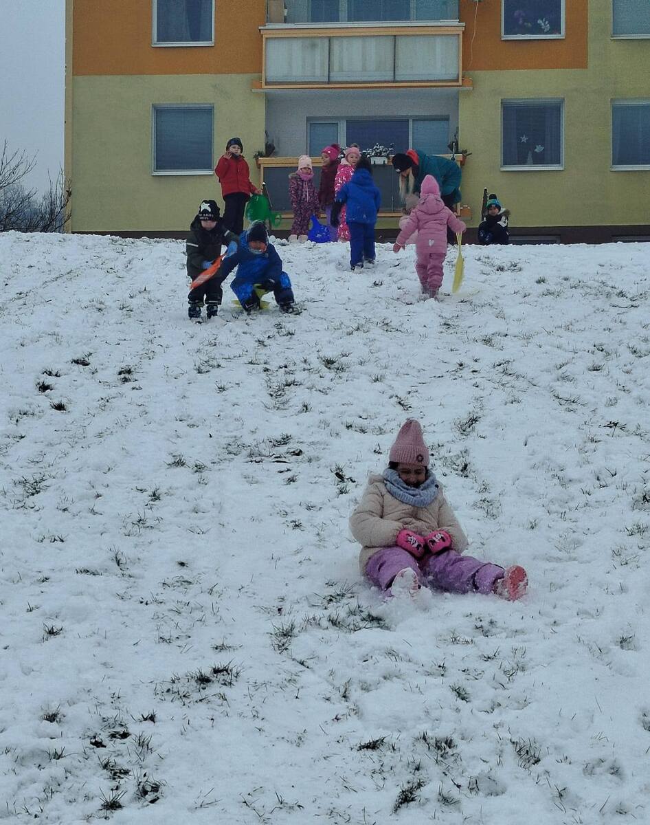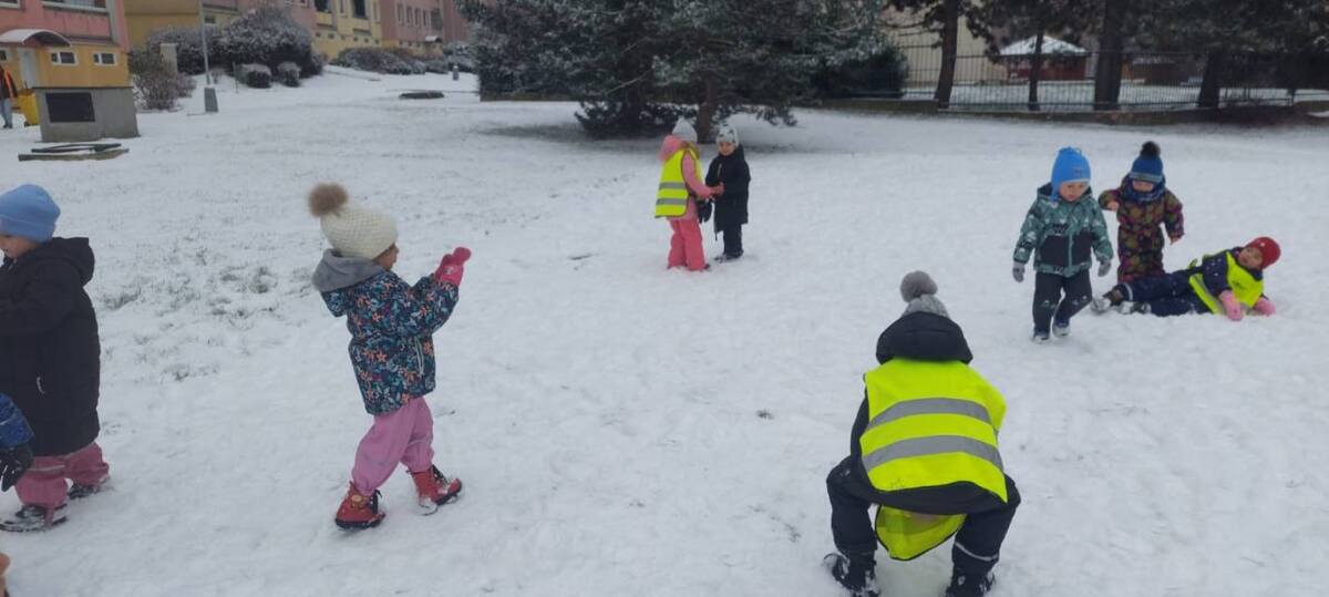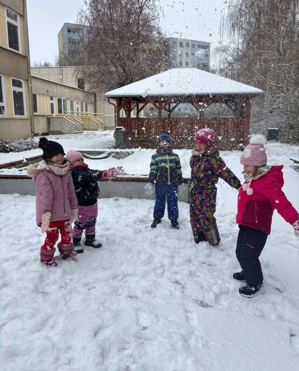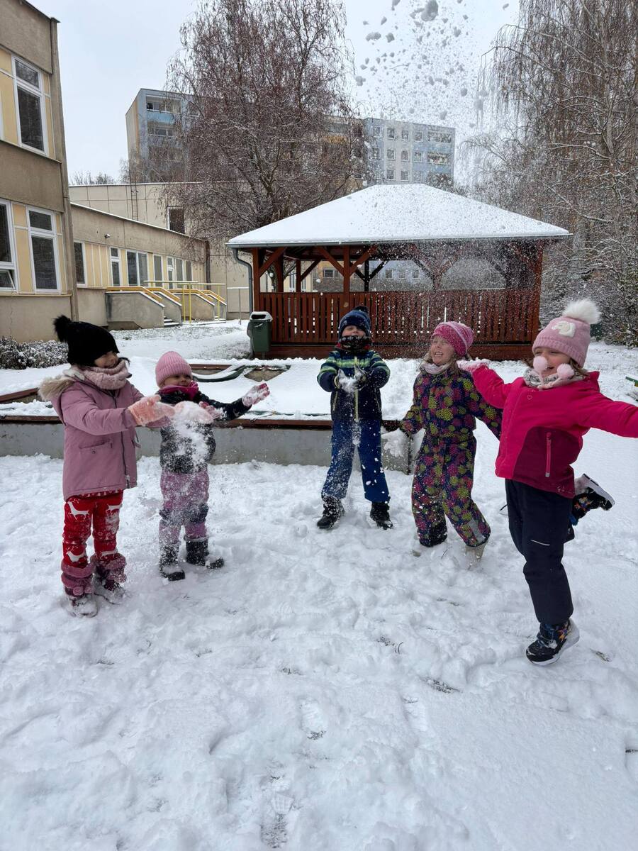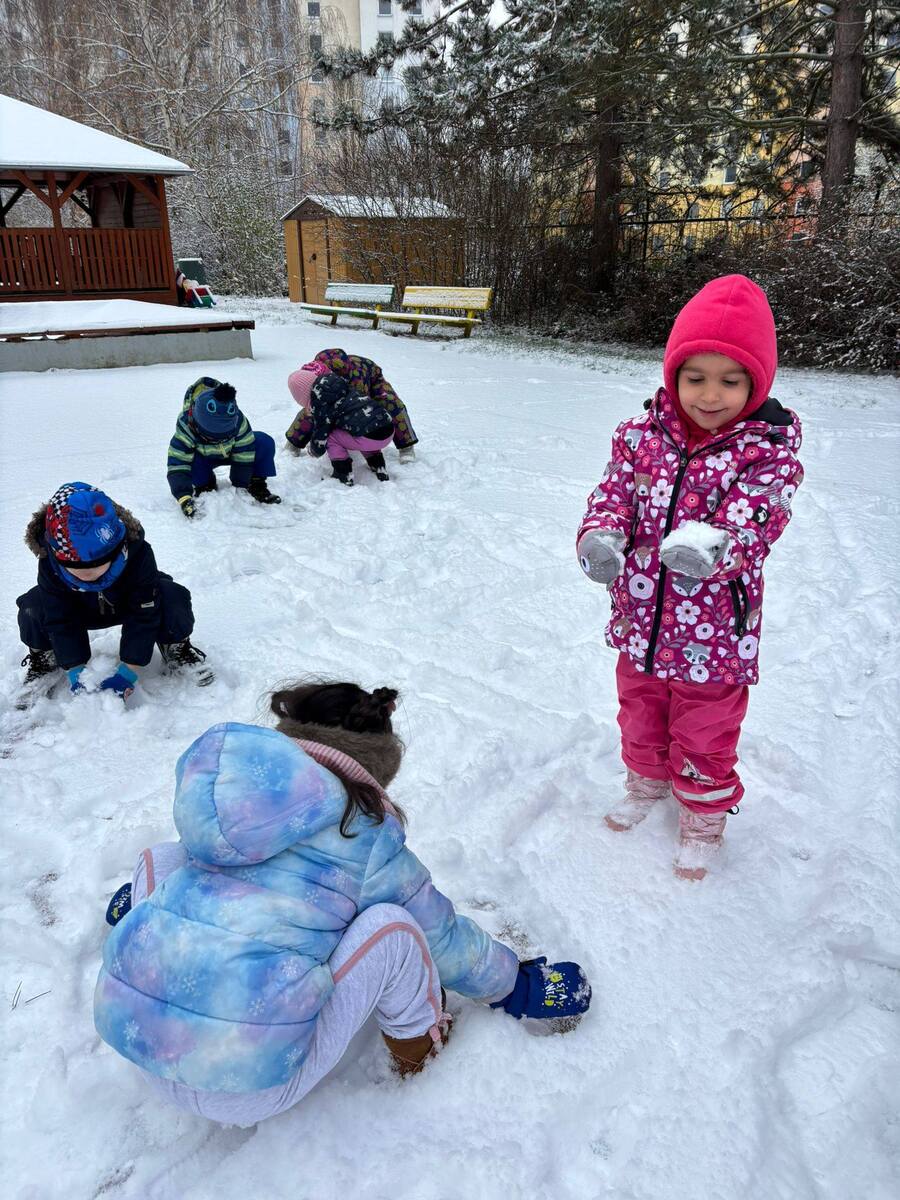 Děti si s nadšením užívaly první sněhovou nadílku, která jim přinesla spoustu radosti. Běhaly, válely se ve sněhu a zkoušely první koulovačky. Zimní dovádění jim dodalo nejen dobrou náladu, ale i zdravý pohyb na čerstvém vzduchu. Do školky se vracely s rozzářenými tvářemi a chutí znovu vyrazit ven.
