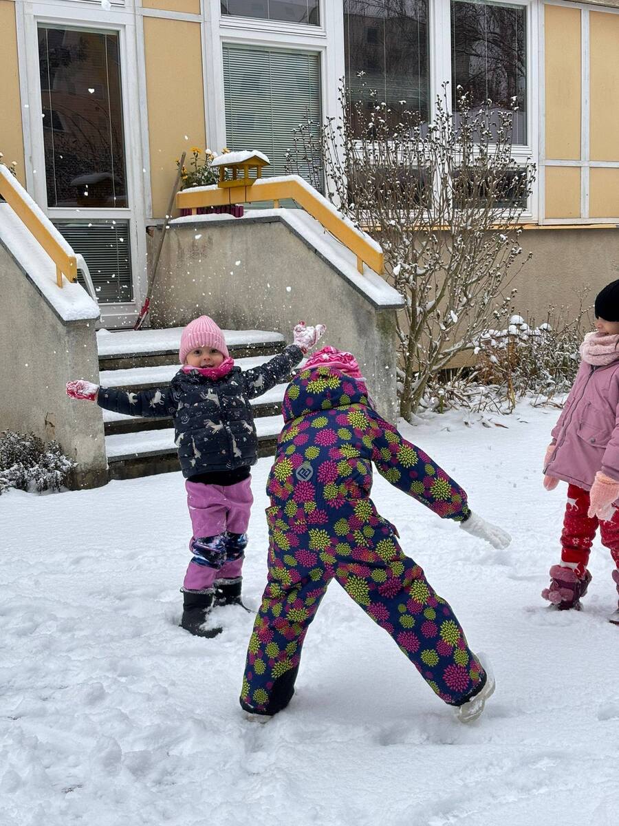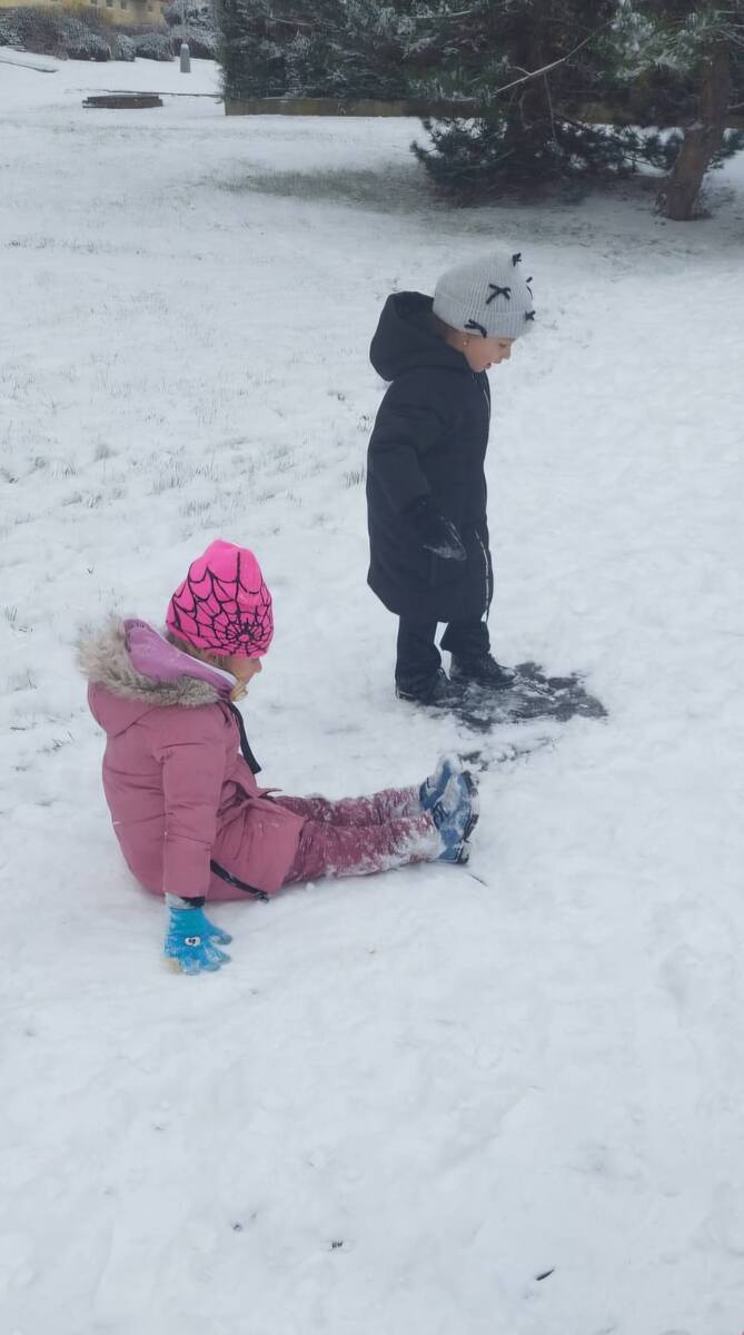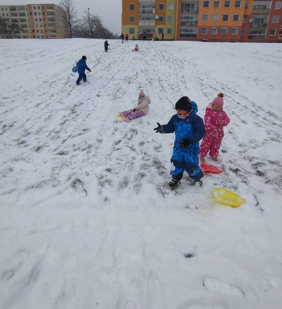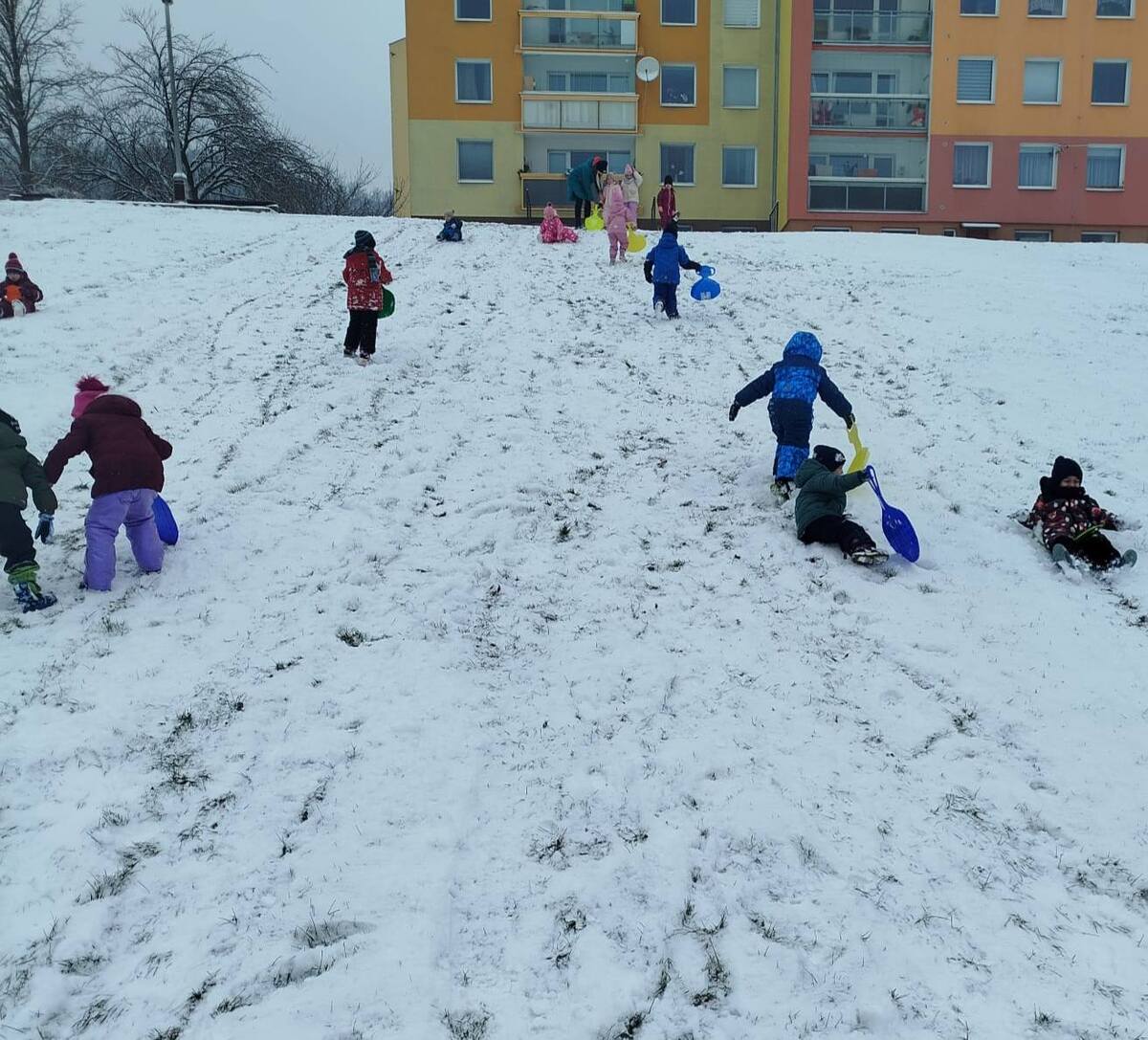 Děti si s nadšením užívaly první sněhovou nadílku, která jim přinesla spoustu radosti. Běhaly, válely se ve sněhu a zkoušely první koulovačky. Zimní dovádění jim dodalo nejen dobrou náladu, ale i zdravý pohyb na čerstvém vzduchu. Do školky se vracely s rozzářenými tvářemi a chutí znovu vyrazit ven.