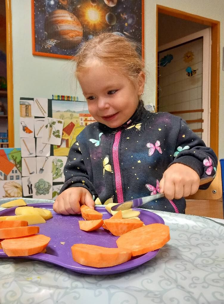 Děti společně s pedagogy připravovaly polévku. Děti poznaly, že je dlouhý proces než se dostaně polévka na talíř. Nejdřív musí zeleninu umýt, poté ji očistit a nakrájet. Vložit do hrnce s vodou. Dále dětem pomohly paní kuchařky, které si odnesly hrnec se surovinami do kuchyně. Děti se přišly do kuchyně podívat jak se polévka vaří. Nakonec si na výborné zeleninové polévce pochutnaly.