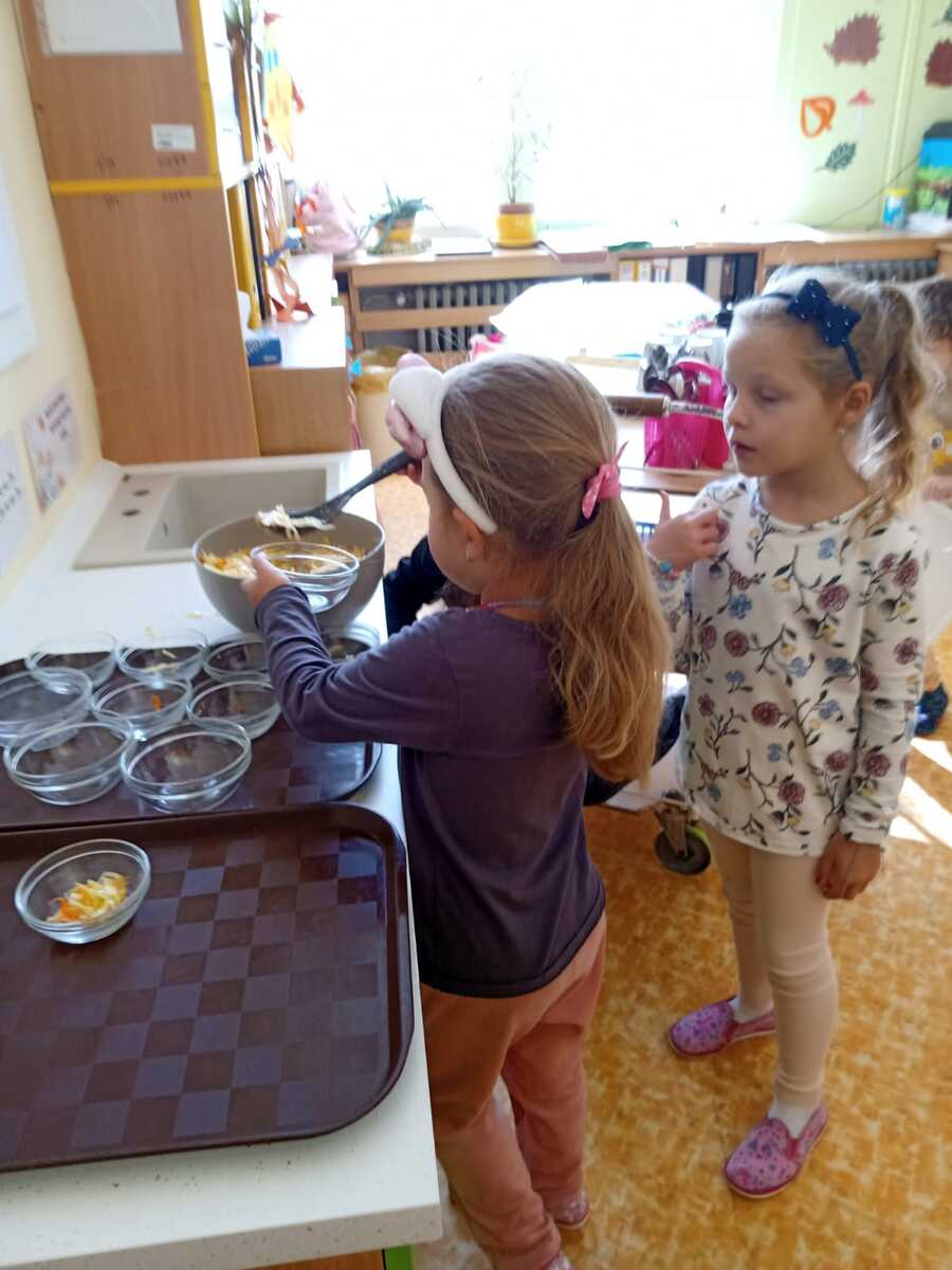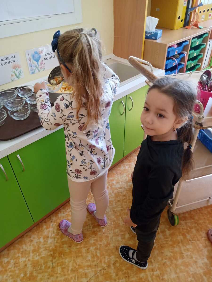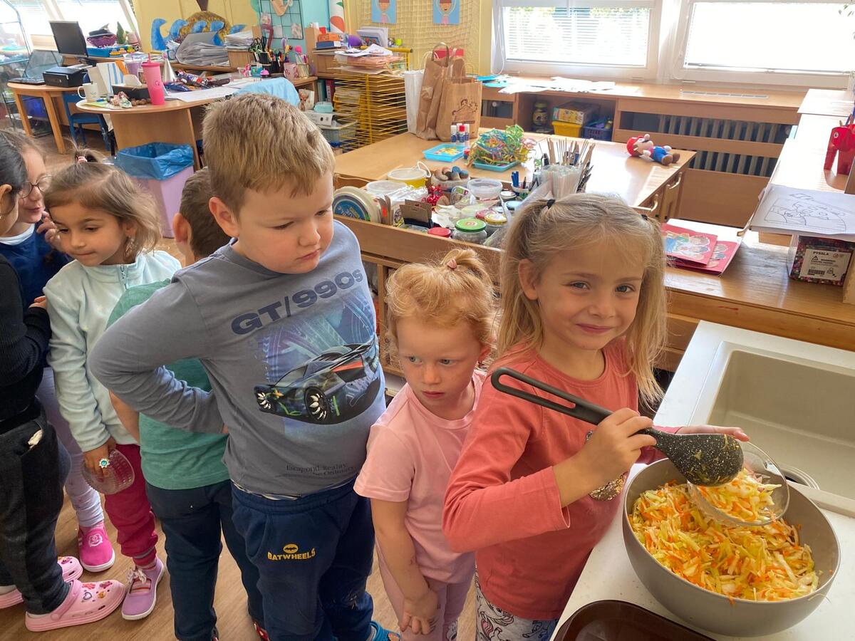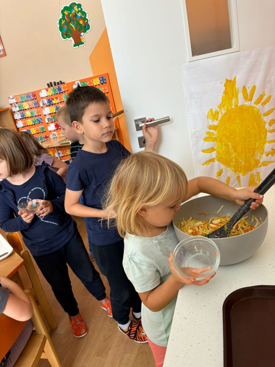 Děti si samostatně nandavaly výborný zeleninový salát, který jim přichystaly paní kuchařky.