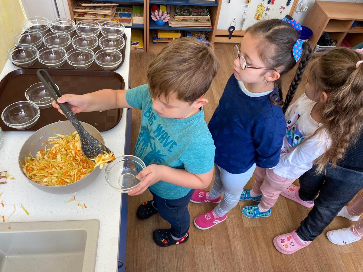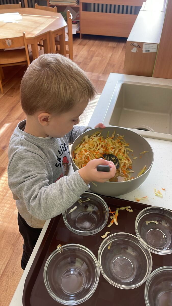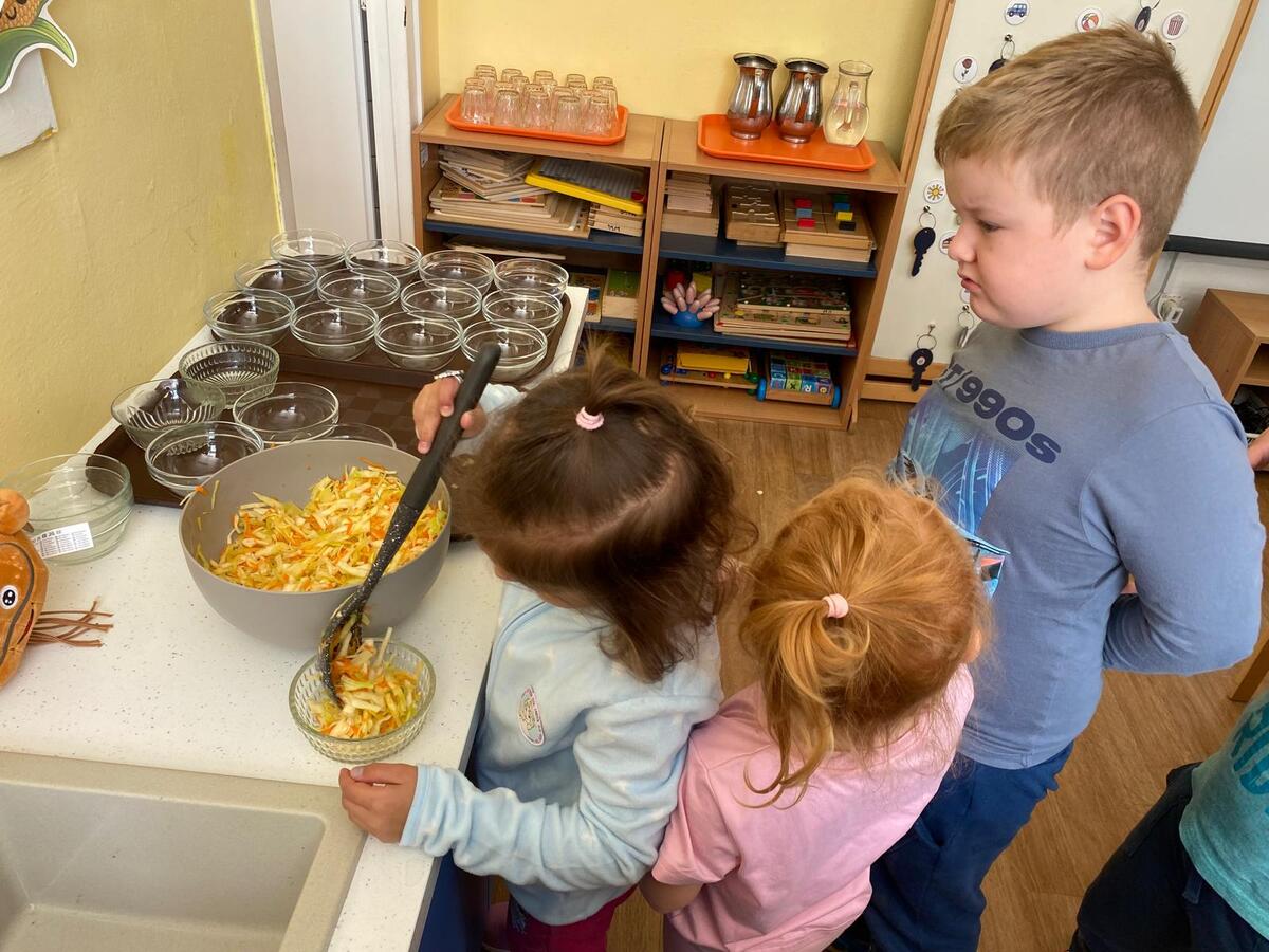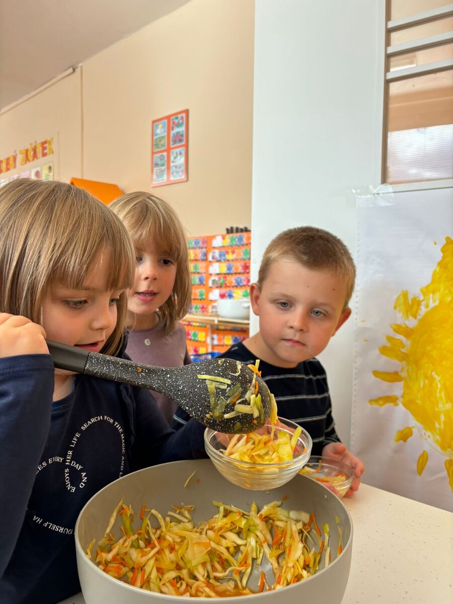 Děti si samostatně nandavaly výborný zeleninový salát, který jim přichystaly paní kuchařky.
