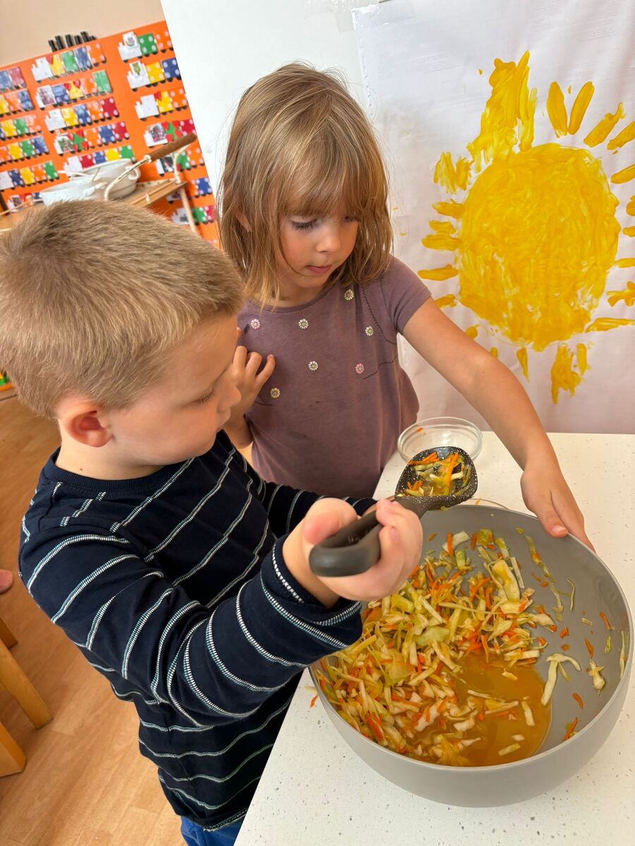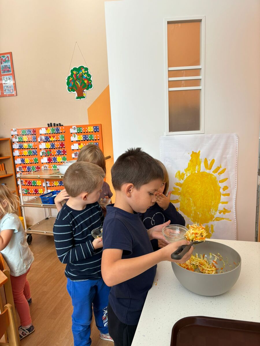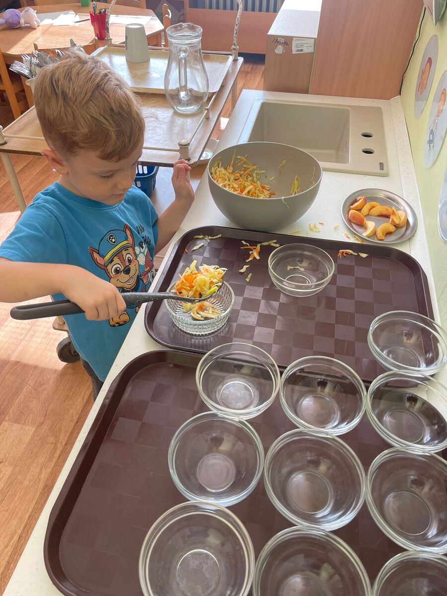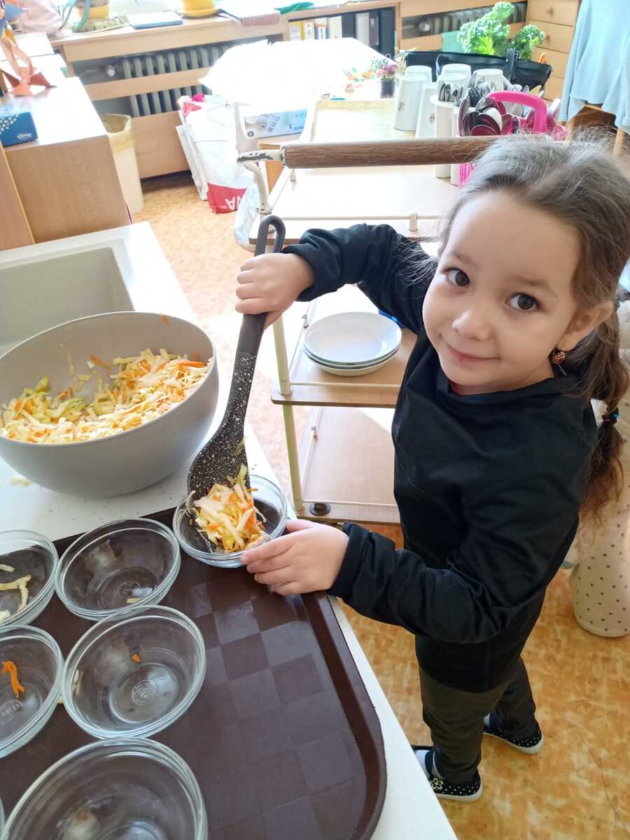 Děti si samostatně nandavaly výborný zeleninový salát, který jim přichystaly paní kuchařky.