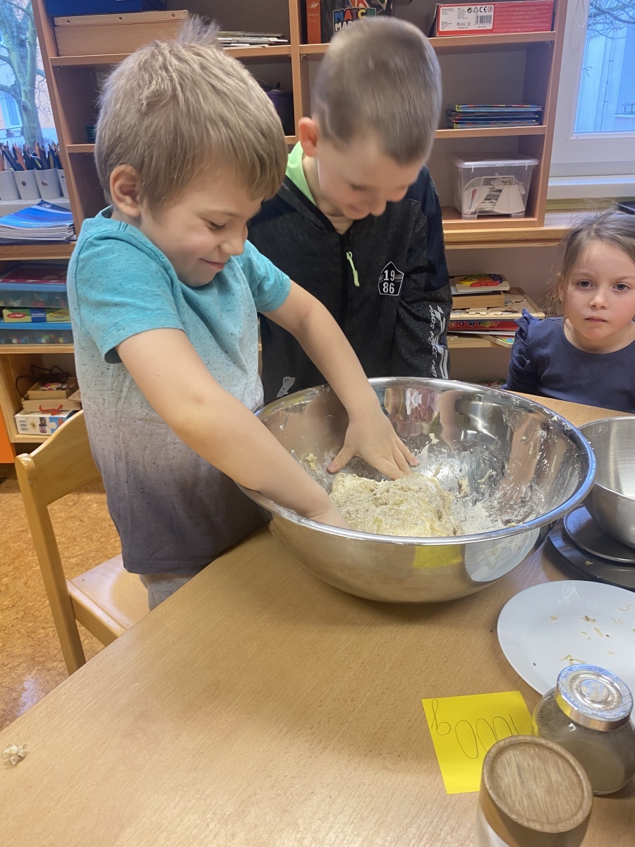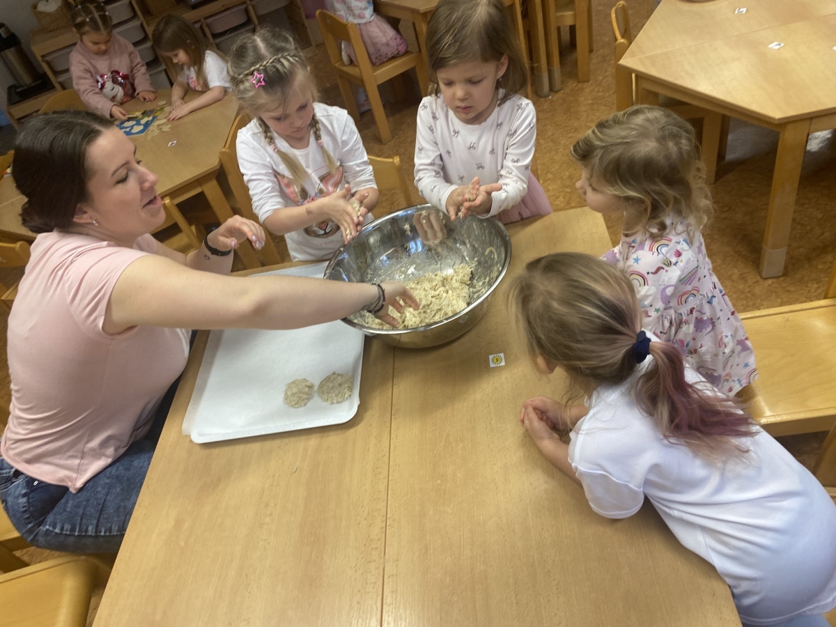 Děti společně připravovaly těsto, tvarovaly placky a sledovaly, jak se z jednoduchých ingrediencí stává voňavé jídlo.