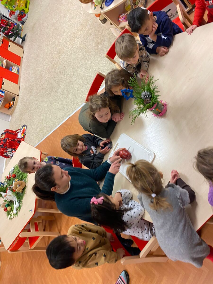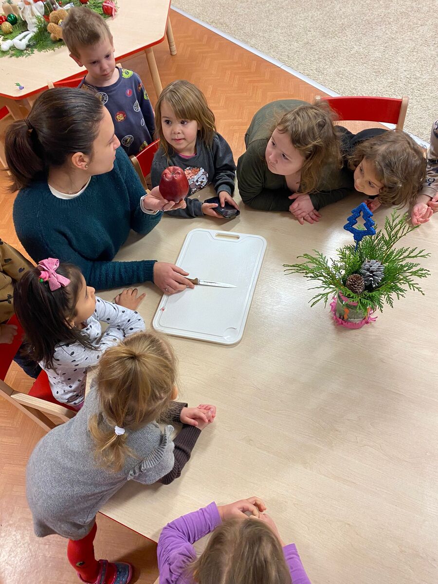 U Želviček se dneska děti z adventního kalendáře dozvěděly, že jablíčko v sobě skrývá hvězdičku, ale kdo to kdy viděl? Děti tomu nechtějí věřit a proto paní učitelka Zuzka na nic nečeká a obětuje svojí dnešní svačinu.