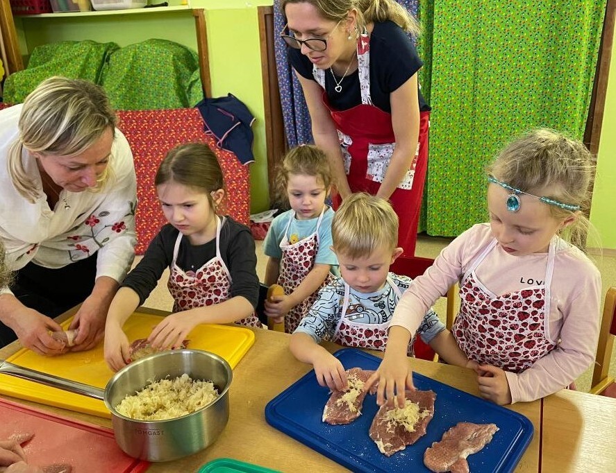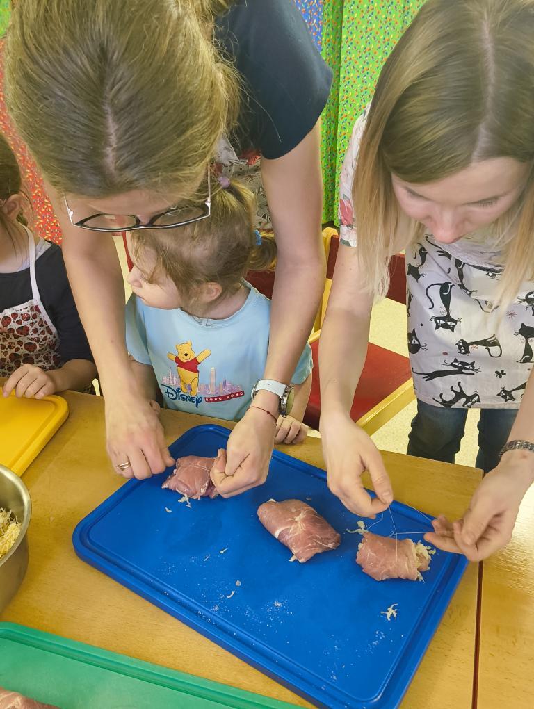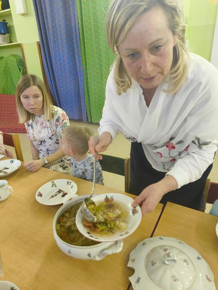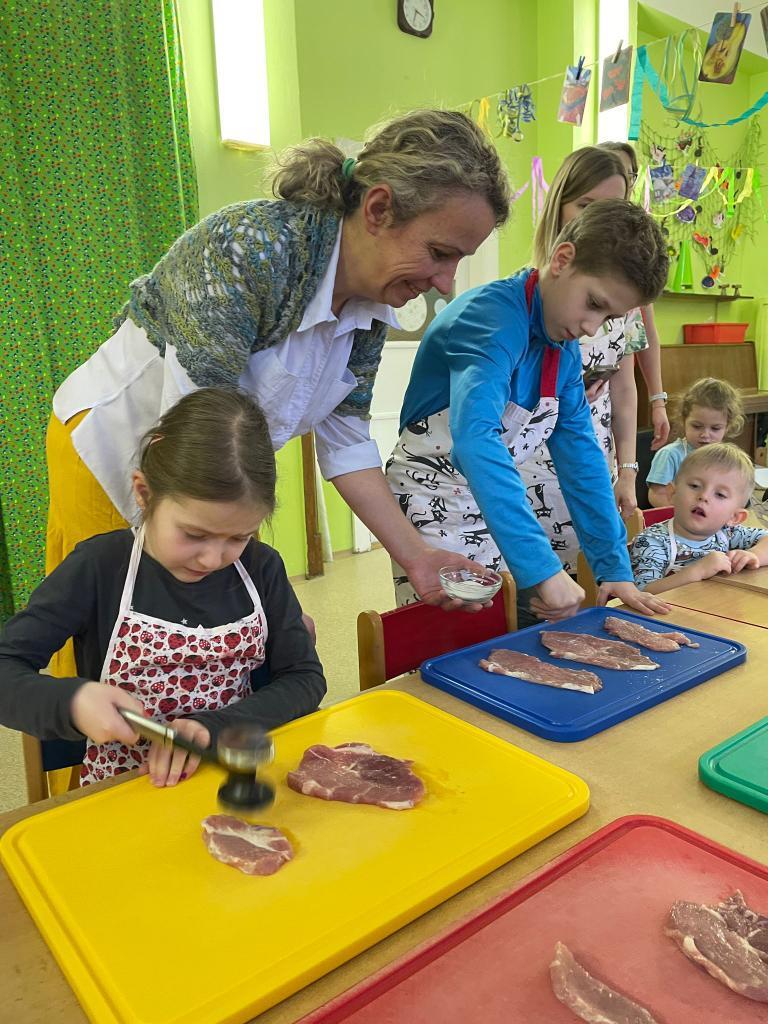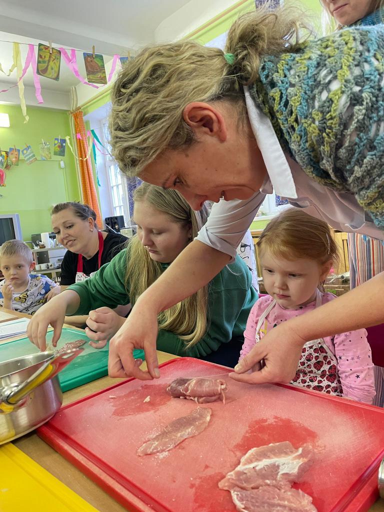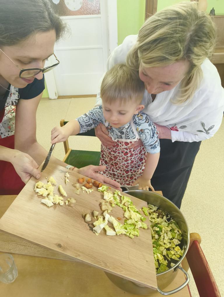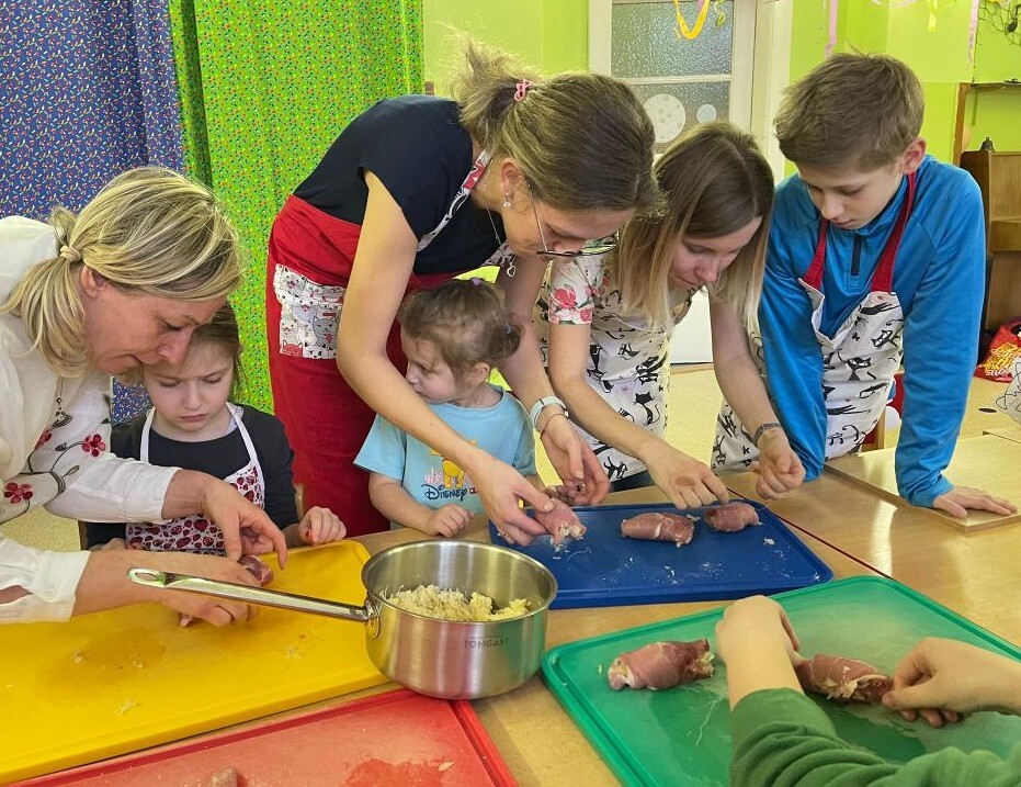 Na kurzu VAŘENÍ pro rodiče s dětmi jsme společně uvařili, upekli a ochutnávali: VÝVAR z kořenové zeleniny s KROUPAMI a VEPŘOVÉ závitky