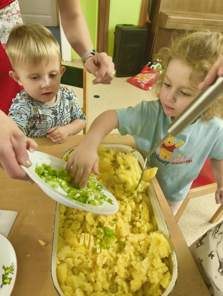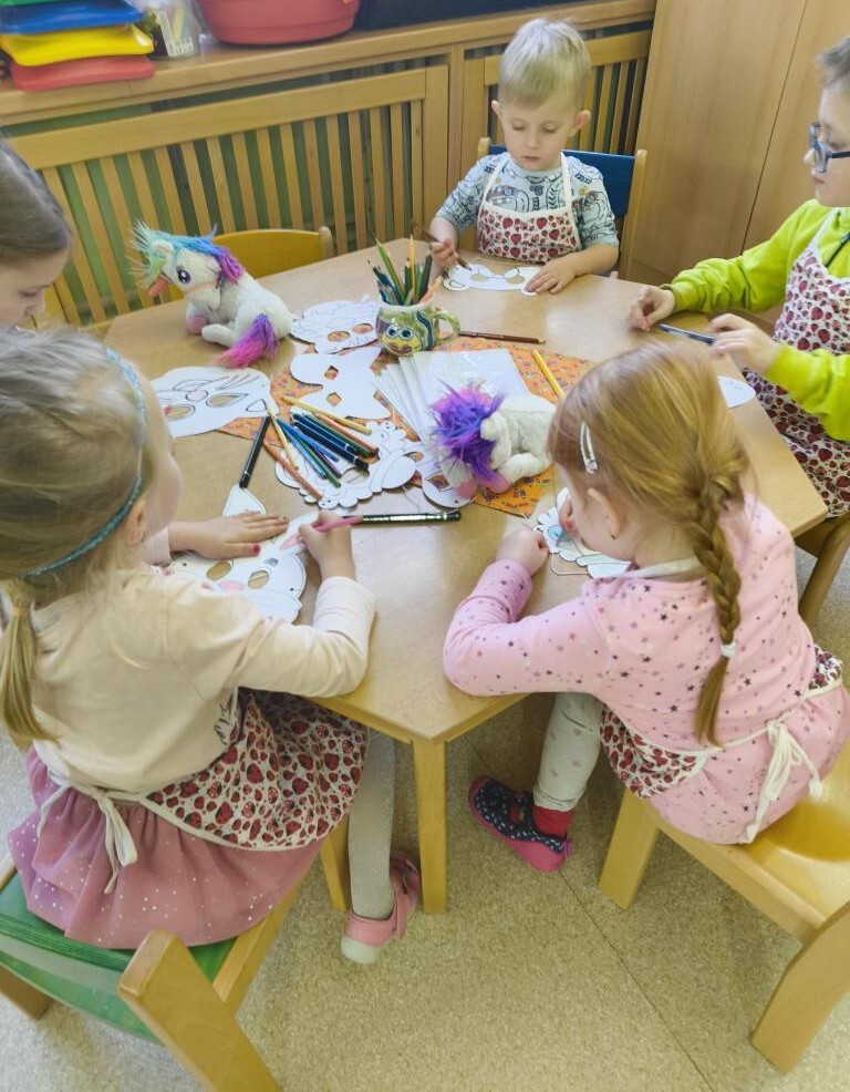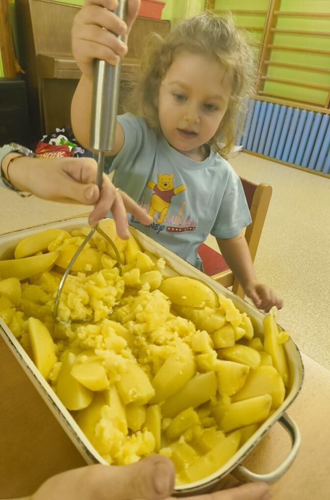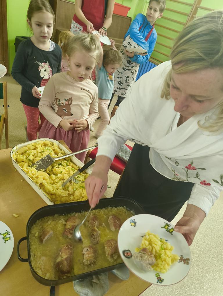 s kysaným ZELÍM a šťouchaným bramborem s máslem a cibulkou. Děti si vybarvily své masopustní masky a s vozembouchem, klapačkou a řechtačkou se vydaly na masopustní obchůzku pro sladké KOBLÍČKY