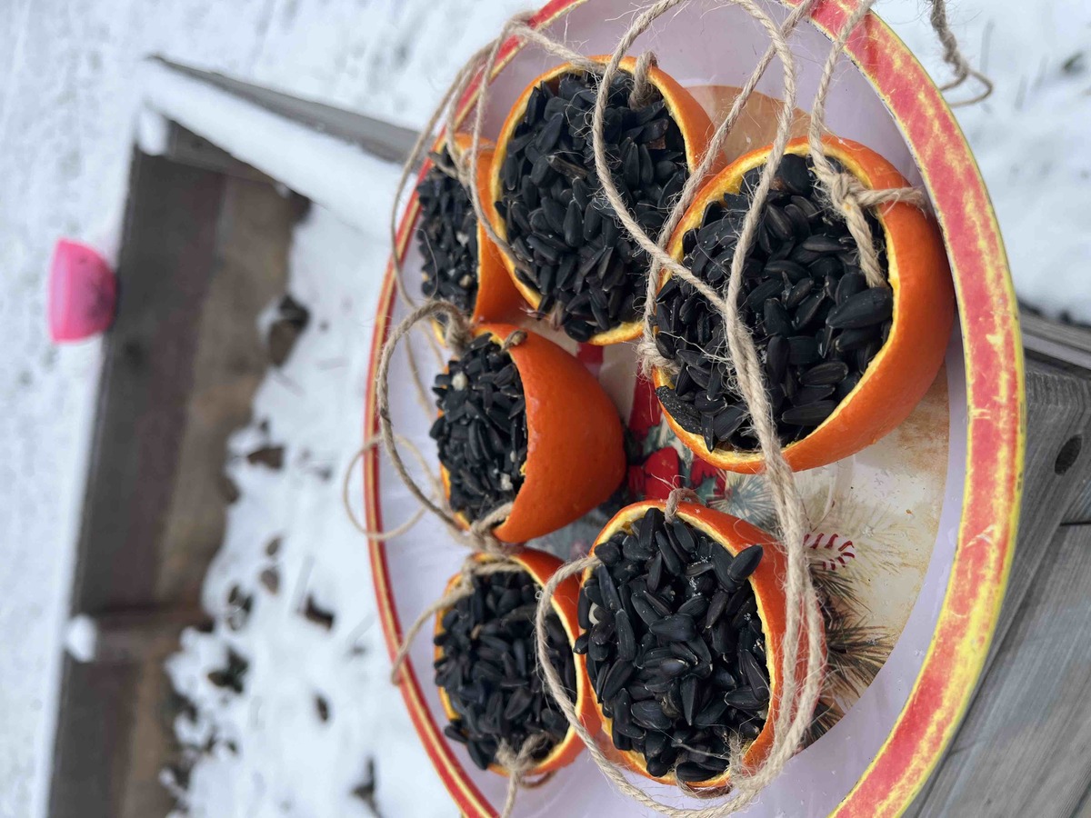 Zimní hodování: Pomerančová krmítka, která zdobí i chutnají