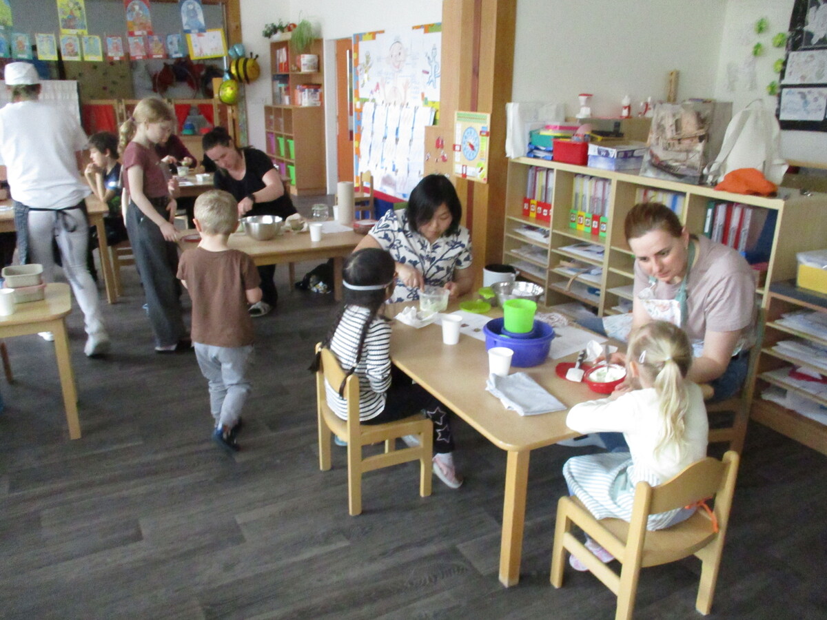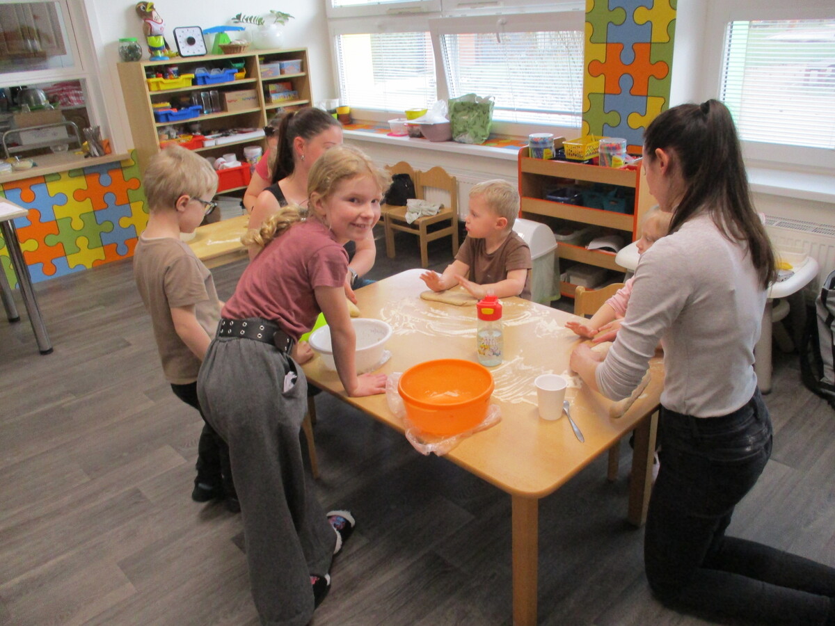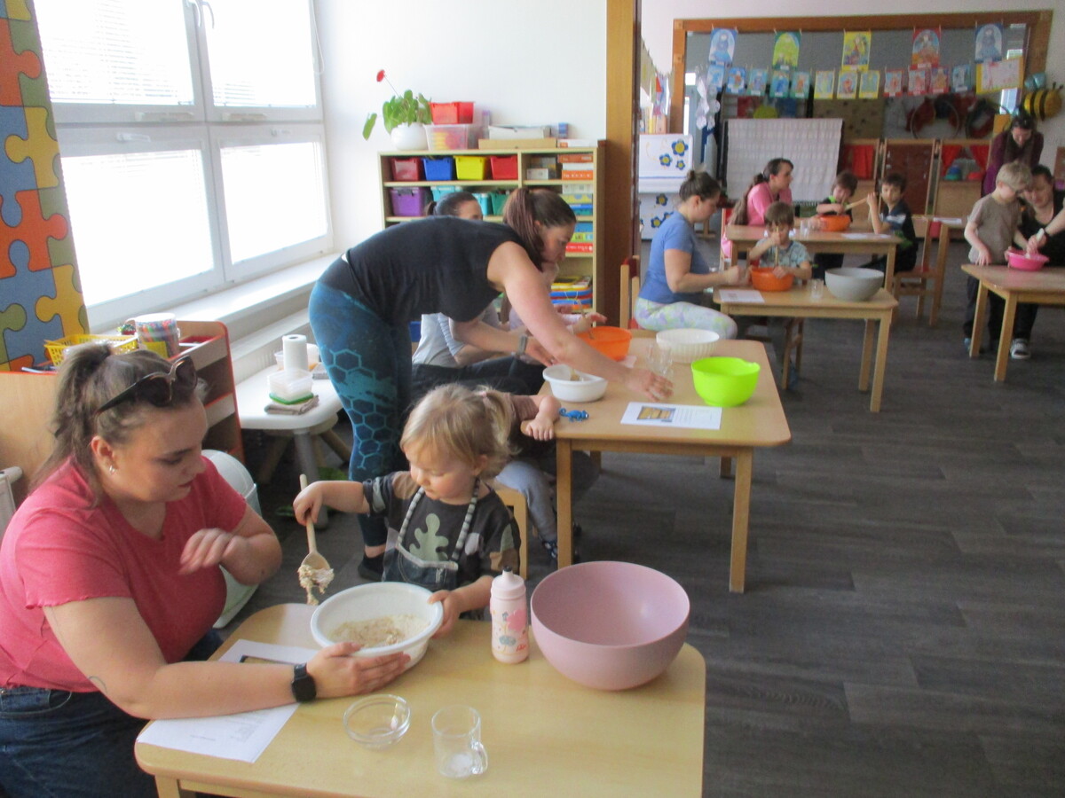 V naší mateřské škole proběhla odpolední akce pro rodiče a děti s názvem Živé vaření. Pod vedením paní kuchařky si všichni připravili několik zdravých a chutných pokrmů. Na jídelníčku byla vícezrnná bageta, avokádová pomazánka, pomazánka z červené řepy a také netradiční cizrnová „nutela“. Děti i rodiče se aktivně zapojili do přípravy, vyzkoušeli si jednoduché postupy a ochutnali výsledky své práce. Akce podpořila nejen spolupráci mezi školou a rodinou, ale také vedla děti k pozitivnímu vztahu ke zdravému stravování.