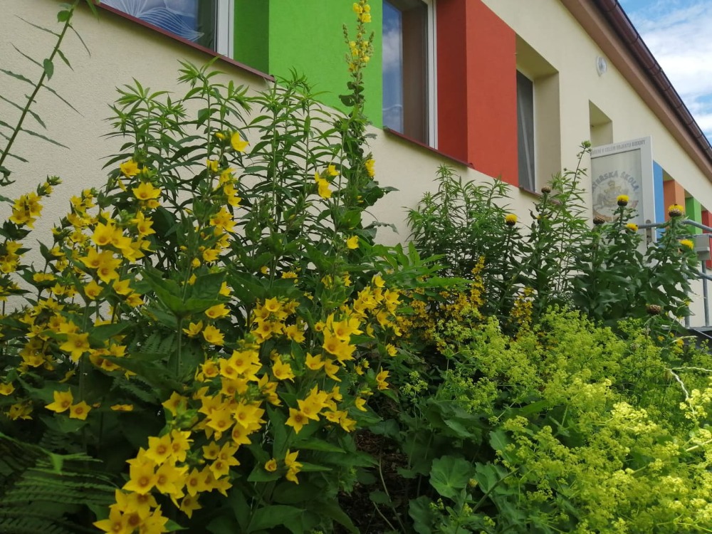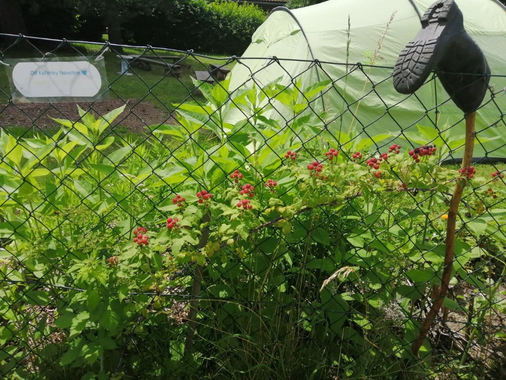 Na zahradě pěstujeme: rybíz, angrešt, jostu, muchovníky, zimolez kamčatský, malinoostružiny, maliny, jahody, hrách, ředkvičky, rajčata, brutnák a bylinky.