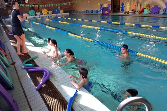 Jsme už za polovinou plaveckého výcviku a je radost sledovat, jak se děti ze 4.–5. třídy každou lekcí zlepšují.