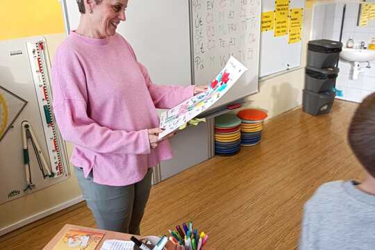 Udělali jsme radost učitelům a naší paní učitelce jsme s láskou předali vlastnoručně vyrobený obrázek.