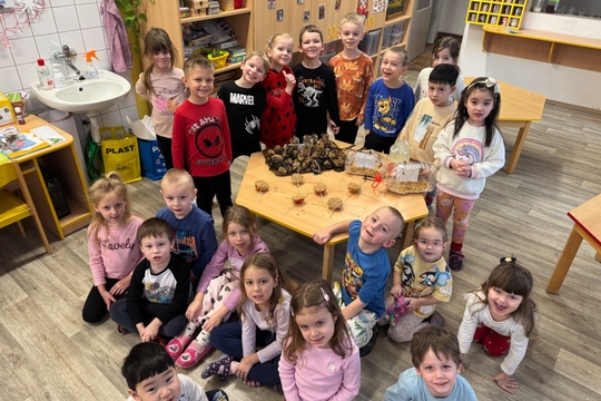 Děti ze třídy Měsíček si užily krásné a poučné dopoledne plné tvoření a péče o přírodu. Společně s paní učitelkou vyráběly závěsná krmítka pro ptáčky ze...