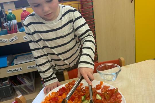 100 lidí 100 chutí a samozřejmě 100 přání. Děti si dnes samostaně vybíraly zeleninu a tím složení své svačiny.