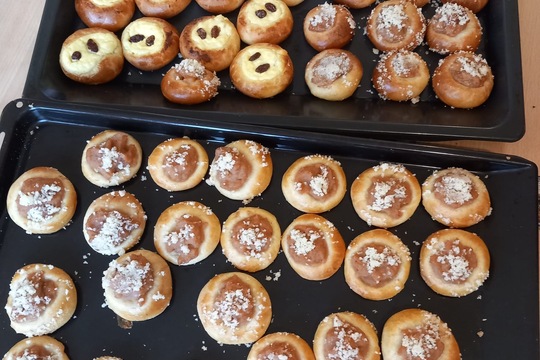 Děti pečou pouťové koláče s povidly bez cukru Na stole voní mouka a droždí, děti mísí těsto a s radostí se učí tradici, která k pouti patří. Lepivé ruce, smích...
