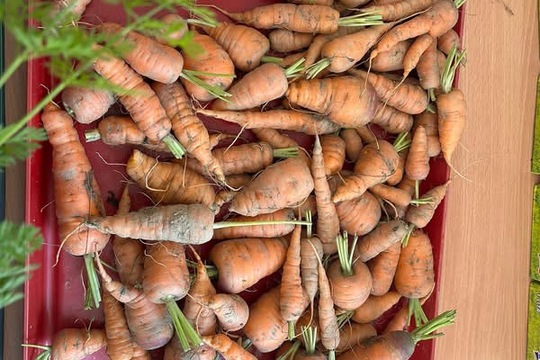 Námi vypěstovaná mrkvička. Podařilo se nám sklidit spoustu mrkve, kterou jsme očistili a uskladnili si na zimu. Kdo chtěl mohl si mrkvičku umýt a ochutnat.