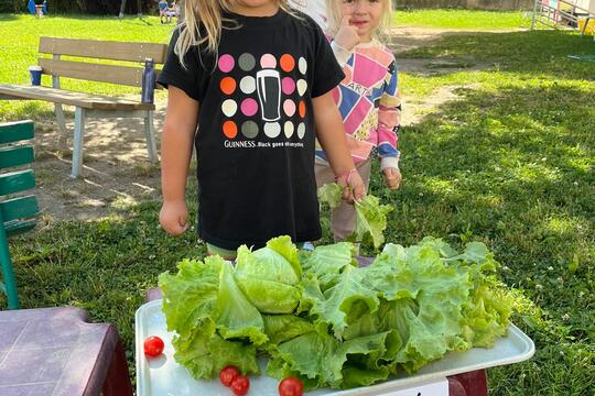 Na školní zahradě jsme uspořádali malý zeleninový trh. Na stolečcích děti nabízely zeleninu, kterou samy vypěstovaly. Děti si tak vyzkoušely roli malých zahradníků...