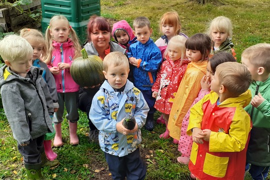17. 10. 2023Děti sklízejí ze zahrady kadeřávek, který přes léto vyrostl do gigantických rozměrů.