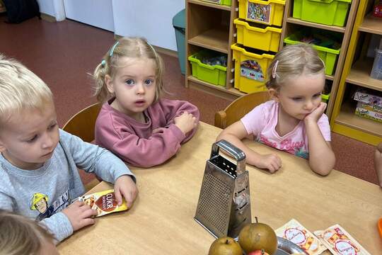 01. 12. 2025Protože máme rádi jablíčka, rozhodli jsme se je usušit. Nejprve jsme je pečlivě omyli, nakrájeli na tenké plátky a připravili k sušení. Děti se zapojily do celé přípravy...