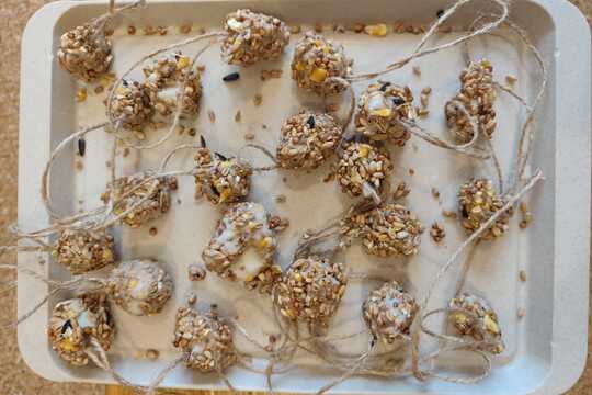 Výroba lojových koulí pro ptáčky