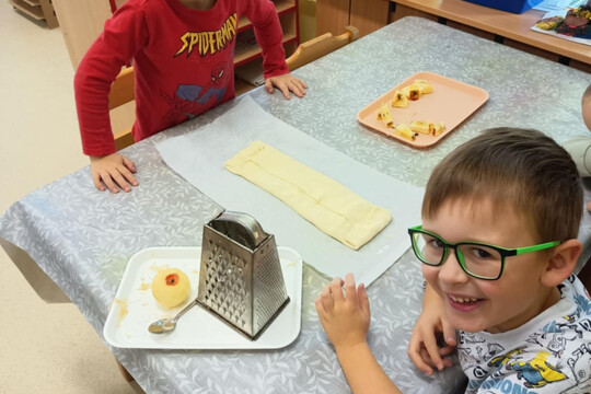 14. 09. 2021Ve třídě Včeličky dnes z posledních kousků úrody na našem záhonku na školní zahradě děti společně s p. kuchařkami a p. učitelkou pekli mini pizzy . Děti musely zeleninu...