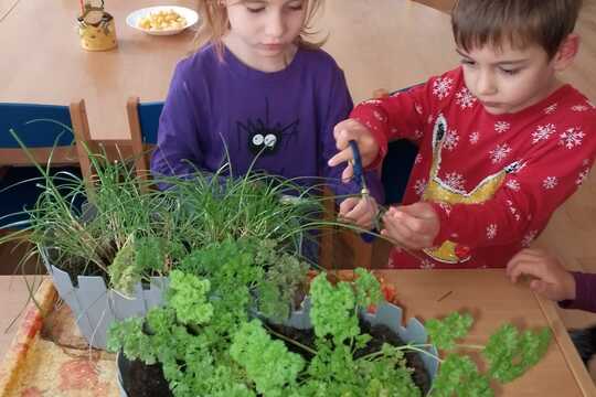16. 04. 2025Tak jsme se dočkali a můžeme vysázet do nových vyvýšených záhonů bylinky, které nám vyrašily ve třídách. Už se těšíme, až je budeme stříhat a sklízet.