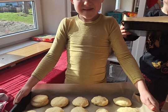 20. 05. 2024S dětmi jsme si povídali o různém povolání. A tak jsme si zahráli i na cukráře. Kynuté těsto jsme posypali ostružinami a přidali trochu drobenky. Koláč všem moc chutnal.