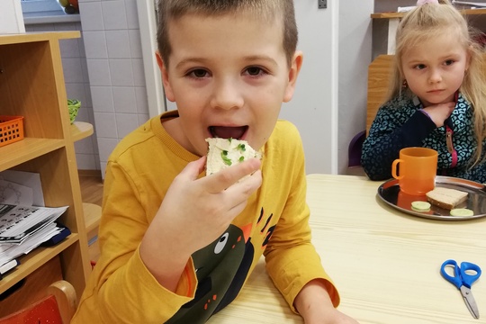 18. 12. 2020Každý pátek nám paní kuchařky nachystají dobrou pomazánku, děti si pak samostatně mažou chleba a chystají svačinku. Příště si ji zkusíme připravit sami.