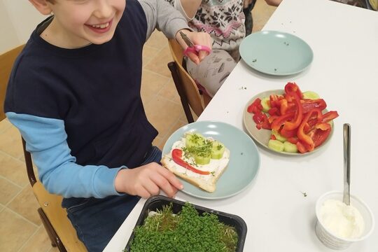 Založili jsme kroužek vaření a naši žáci v něm vaří ze sezónních a místních potravin a biopotravin, a surovin, které sami vypěstovali na školní zahradě.
